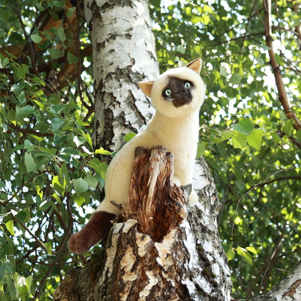 Pluszak ma 30 cm wysokości, a jego kremowe futerko z ciemniejszymi znaczeniami wykonano z miękkich, hipoalergicznych materiałów. Smukły pyszczek, niebieskie oczka i klasyczne syjamskie umaszczenie sprawiają, że wygląda jak prawdziwy kotek — tylko znacznie bardziej przytulaśny.