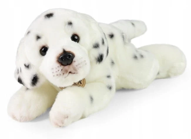 Pluszak ma 30 cm długości, a jego biało-czarne „futerko” wykonano z hipoalergicznych materiałów bezpiecznych dla dzieci. Starannie wykonane cętki, delikatny pyszczek i spokojna pozycja sprawiają, że wygląda jak prawdziwy dalmatyńczyk odpoczywający po zabawie.