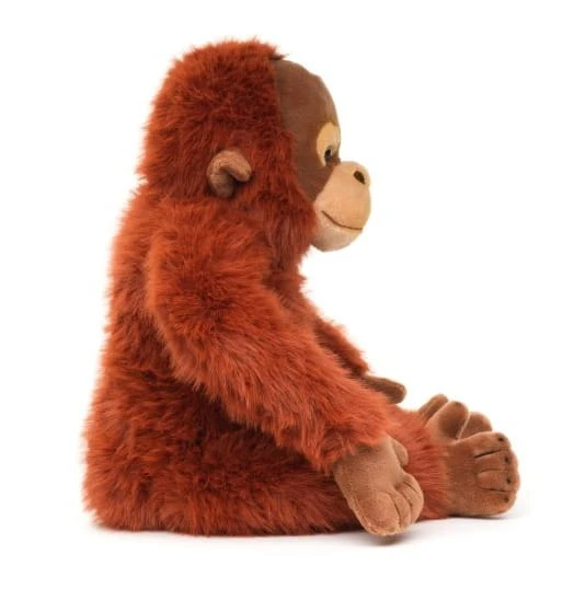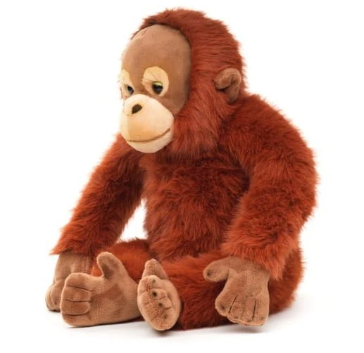 Realistyczne detale – długie ramiona, sympatyczna twarz i miękkie futerko – sprawiają, że orangutan wygląda jak żywy. To maskotka, która uczy empatii wobec zwierząt i przenosi dzieci w świat tropikalnej dżungli.
